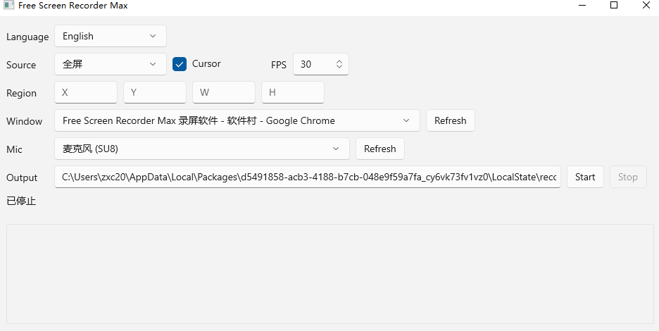 多种录制模式:全屏 / 指定窗口 / 自定义区域。